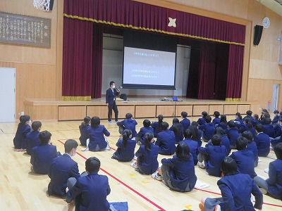 3年生は,全体道徳を実施しました。樫原中学校での3年間を振り返った後,学校とはどんな場所であったか,仲間とはあなたにとってどんな存在であったかについて,仲間とともに考えました。
