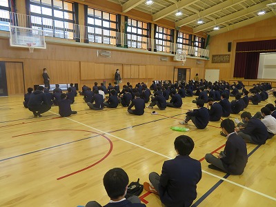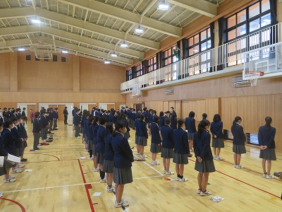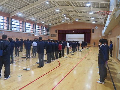 3年生は体育館で,卒業式後の取組の練習をしました。