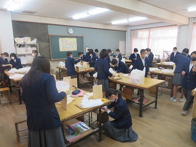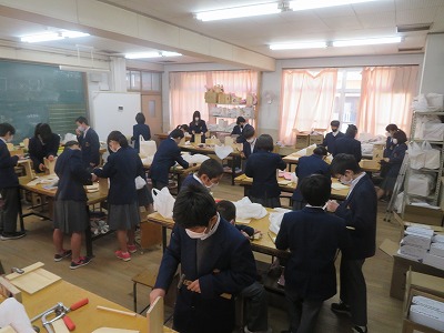 1年2組の技術・家庭科は,切断した材料を加工した後,げんのうと釘を使って組立の作業を行いました。