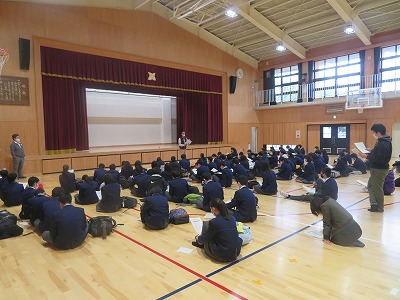 3月8日に行われる公立中期入試の事前指導を,体育館で行いました。