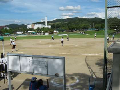 8月6日(土)京都府立山城総合運動公園において,ソフトボール競技の近畿大会が行われました。京都1位の樫原中学校はベスト4をかけて兵庫1位の竜山中学校と対戦しました。2回に1点をリードされたもののエースを中心にしっかり守り,攻撃陣も何度も得点圏にランナーを送り押し気味の試合展開でしたがあと一歩及ばず1−2で悔しい敗戦となりました。持前のチームワークの良さや最後まであきらめない一生懸命なプレーぶりは見事でした。全国大会が楽しみです。たくさんの皆さんの応援有難うございました。