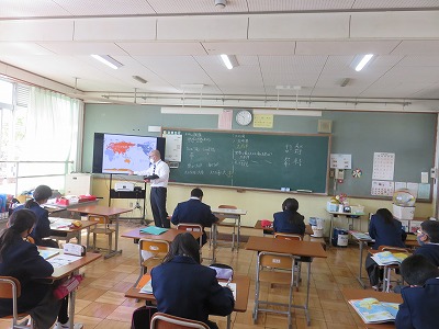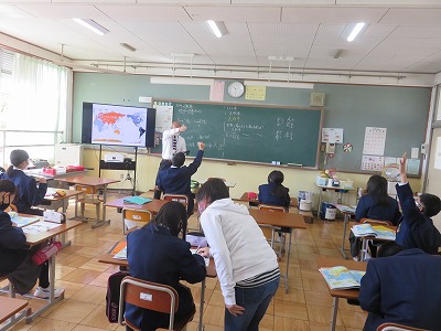 1組の社会は,地図帳を使って大陸の名前や,国の場所について