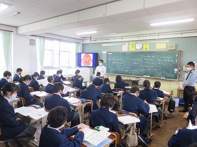 1年4組の英語は,英語で自己紹介をしコミュニケーションを
