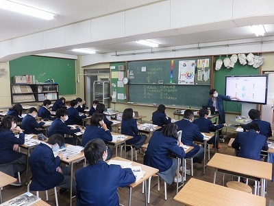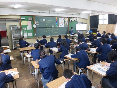 2年2組の美術は,一点透視図法を理解することを目標に
