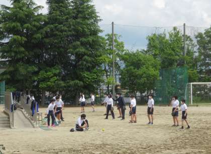 3年5・6組の保健体育は,ソフトボールの投げ方や