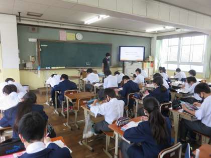 1年2組の保健体育は,睡眠・休養と健康との関係に