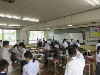 1年2組の英語は,ペアでタブレット端末を活用し,