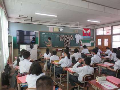1年5組の家庭科は,和服や洋服の構成や着方の違い