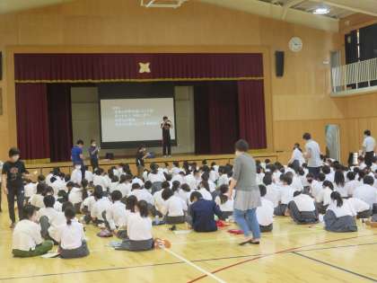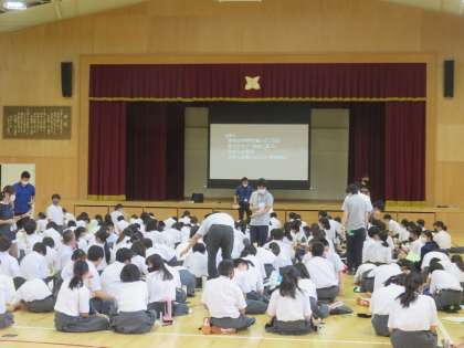 1年生が体育館で,仲間の尊さを理解し,仲間のいい