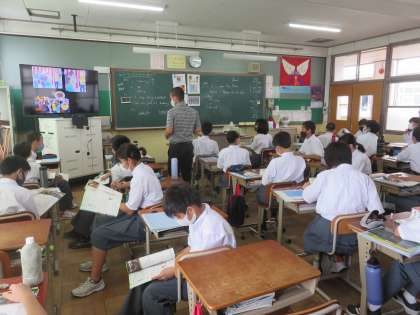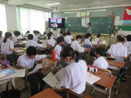 1年5組の英語は,得意なことをセラ先生に伝える