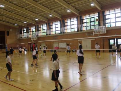 1年3組の保健体育は,バレーボールでチームの仲間と