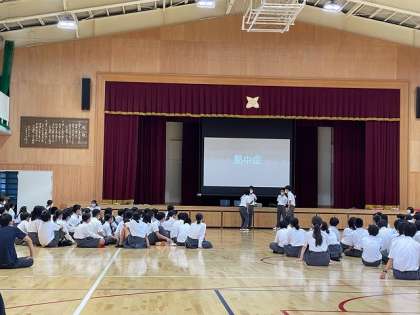 2年生の学年集会は,学年レクのあと,夏休みの過ごし方を