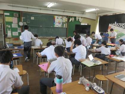 3年2組の美術は,作品の良さを伝えるために見せ方を