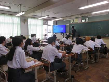 3年5組の数学は,二次方程式を解の公式を使って解くことが