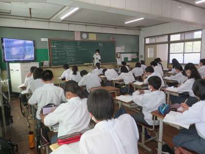 2年3組の数学は,一次関数のグラフに出てくる切片に