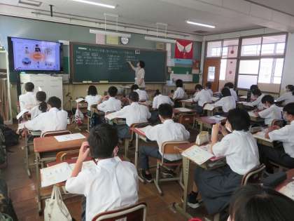 1年5組の家庭科は,生活の中で食事が果たす役割について
