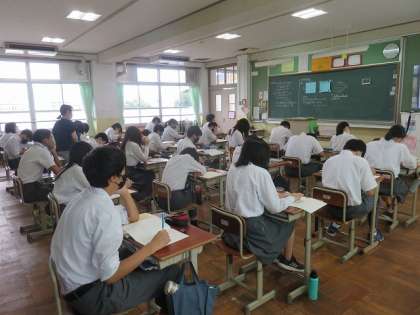 3年3組の数学は,二次方程式を利用して容積の問題に