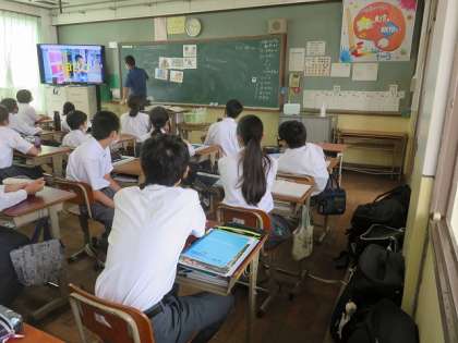 1年3組の英語は,ALTのセラ先生に友達のことを