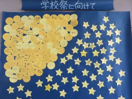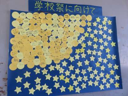 全校生徒がそれぞれ学校祭に向けて頑張ることを書いて,