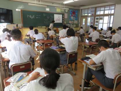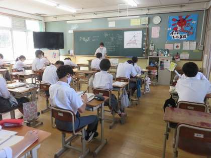 3年2組の数学は,等積変形の復習をした後,二次関数に