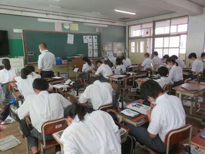 2年5組の国語は,今の「私」を表す漢字を毛筆で書き,