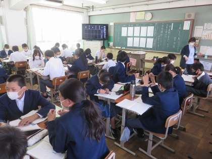 1年3組の国語は,「『言葉』をもつ鳥 シジュウカラ」の単元で,論の展開に着目し,その効果を表にまとめて考えることを目標に,学習を進めました。