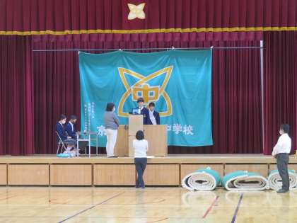 今日の5・6時間目に,ZOOMを活用して生徒会本部役員選挙が行われました。立候補者全員が学校を良くしようという思いで,公約を掲げ,立会演説会で思いを伝えました。