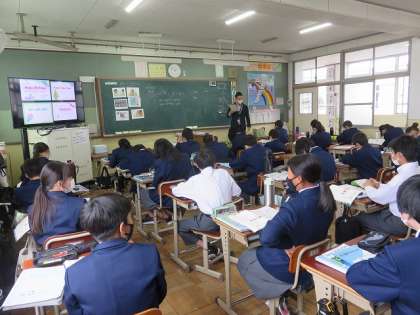 1年7組の英語は,いろいろなカードを英語で書くことを目標に学習を進めました。