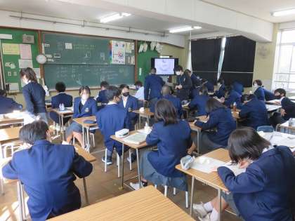 1年4組の美術は,面の向きを意識して陰影で立体感を出すことを目標に学習を進めました。