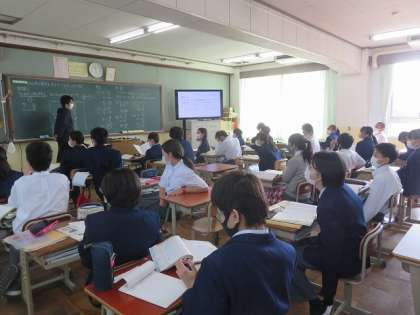 1年2組の数学は,反比例の関係を表や式で表すことを目標に学習を進めました。