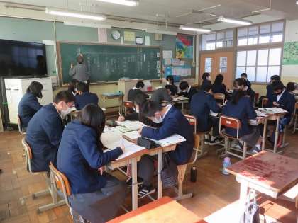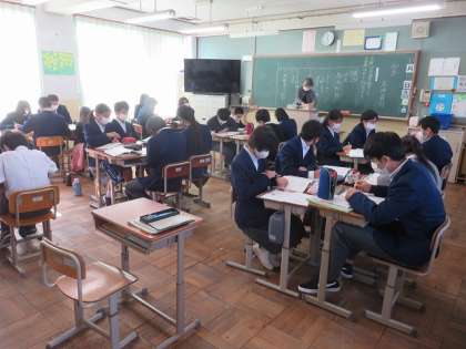 3年8組の国語は,島崎藤村の「初恋」で言葉の響きを味わって朗読することを目標に学習を進めました。