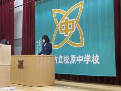 6限に令和3年度後期生徒総会が行われました。今回もGIGA端末を活用し,新生徒会本部役員が,各委員会の方針や活動予定などを発表し,全校生徒に承認されました。これからも生徒のみなさんでよりよい樫原中学校を創っていってください。