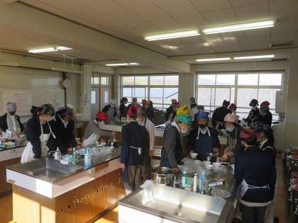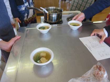 2年3組の家庭科は,鰹と昆布でだしをとり,お吸い物をつくることを目標に調理をしました。