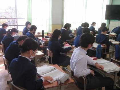 2年5組の英語は,今週行われる3学期テストに向けて,これまで学んだことの復習をしました。生徒のみなさんは,テストに向けてポイントをしっかり聞き,うなずいてくれていました。