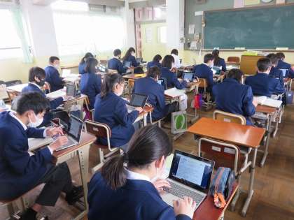 1年2組の国語は,自分の体験を具体的に表し,相手を引き付けられる文章を書くことを目標に学習を進めました。随筆を書くための下書きをタブレットを活用して行いました。