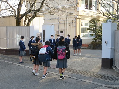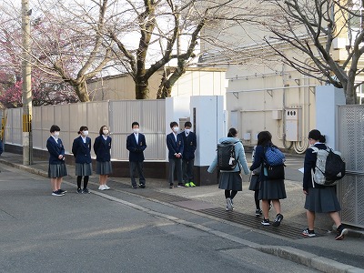 今日も朝校門に多くの人が立ち,挨拶をしてくれていました。