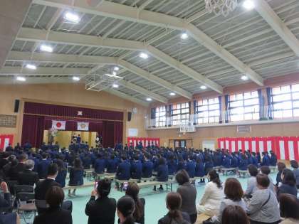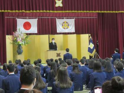 令和3年度第47回卒業証書授与式が行われました。新型コロナ感染拡大防止のため,時間を短縮した形にはなりましたが,とても感動的な式になりました。来賓の皆様・保護者の皆様,本日はご参列いただきありがとうございました。