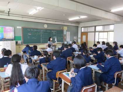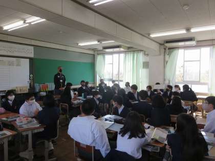 1年2組の英語は,小学校で習った英語を使って,いくつかの場面で話すことを目標に,グループで考えたり,小学校での英語を思い出したりして,これから始まる中学校での英語につなげることができました。