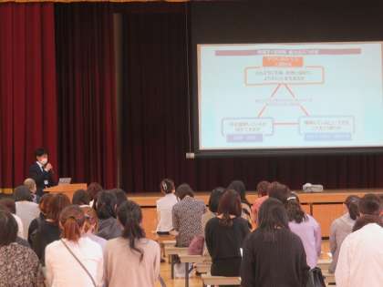 6限目に体育館で,令和4年度の教育課程説明会が行われました。教育目標や授業の特徴,定期テストや評価・評定について教務主任から説明がありました。今回ご参加されなかった保護者の方には後日お子さまを通じて資料を配布させていただきます。