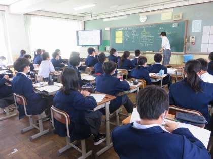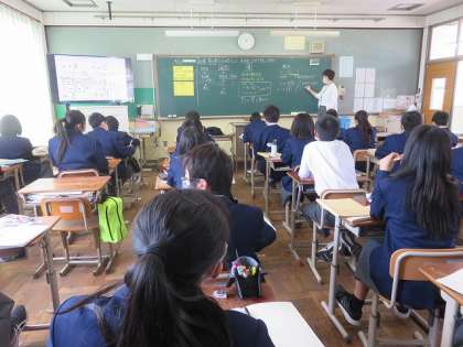 1年3組の数学は,正の項・負の項だけの式にしてまとめることを目標に,かっこや+(たす)を書かずに表す練習をしました。式がスッキリして見やすくなりますね。