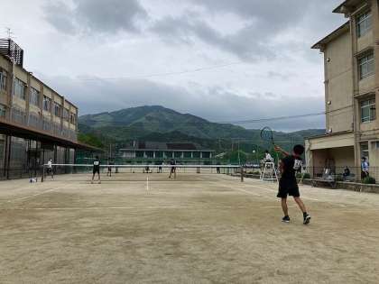 男子ソフトテニス部が洛北中学校で個人予選を行いました。3ペアは惜しくも敗退しましたが,1ペアが初戦に勝利しました。途中から雨が降り始め,続きは別日となります。