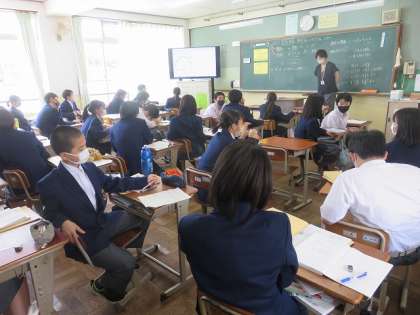 2年6組の数学は,問いに応じて文字を設定し,説明することを目標に,問題文を読み,何を文字で置くかを考え,できた文字式を用いて問題を解きました。