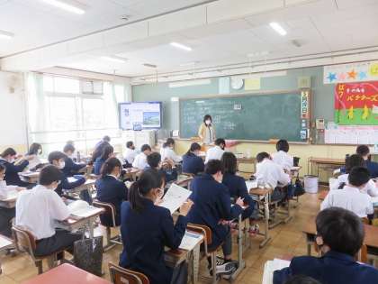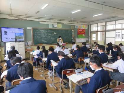 2年7組の社会は,日本の工業の変化を知り,これからについて考えることを目標に,工業地域が広がっている場所やその理由などをみんなで考え,まとめました。