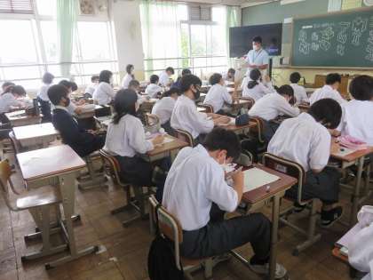1年6組の技術は,キャビネット図で表された立体を等角図で描くことを目標に,斜眼紙に好きな立体を等角図で描く練習をしました。みなさん,うまく描けましたか?