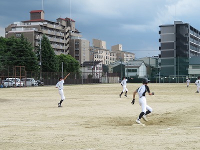 野球部は7月9日(土)南区の殿田球場で八条中学校と対戦し、3回17対0のコールドゲームで勝利しました。