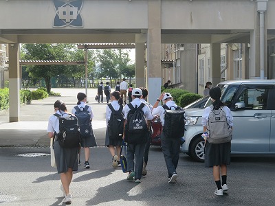 額に汗をしながら、登校する姿がありました。今日は(も)暑い一日になりそうです。熱中症対策も十分行いながら、教育活動を進めてまいります。