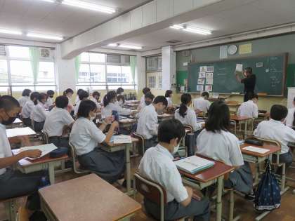 2年2組の英語は、What's important in a homestay?(ホームステイで大切なことは何ですか?)についてみんなで考えました。ホストファミリーとコミュニケーションをとる等、それぞれ意見を出し、英語で表現する練習をしました。