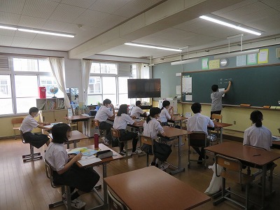 1組の教室では、本日のテストについて確認をしていました。