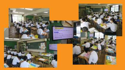 美術室では、一点透視図法を用いて、自分の理想の部屋を作成していました。作業の進捗状況は人により大きく異なっていますが、丁寧に丁寧に作業を進めていました。細かなところに絵の具を入れる際、息をひそめて静かにゆっくりと作業を進めてくれていました。