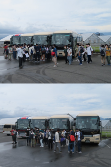 バスは昼食場所であるフルーツパークに到着し、食事会場で昼食を摂りました。午後からの活動に向けてしっかり食べていました。